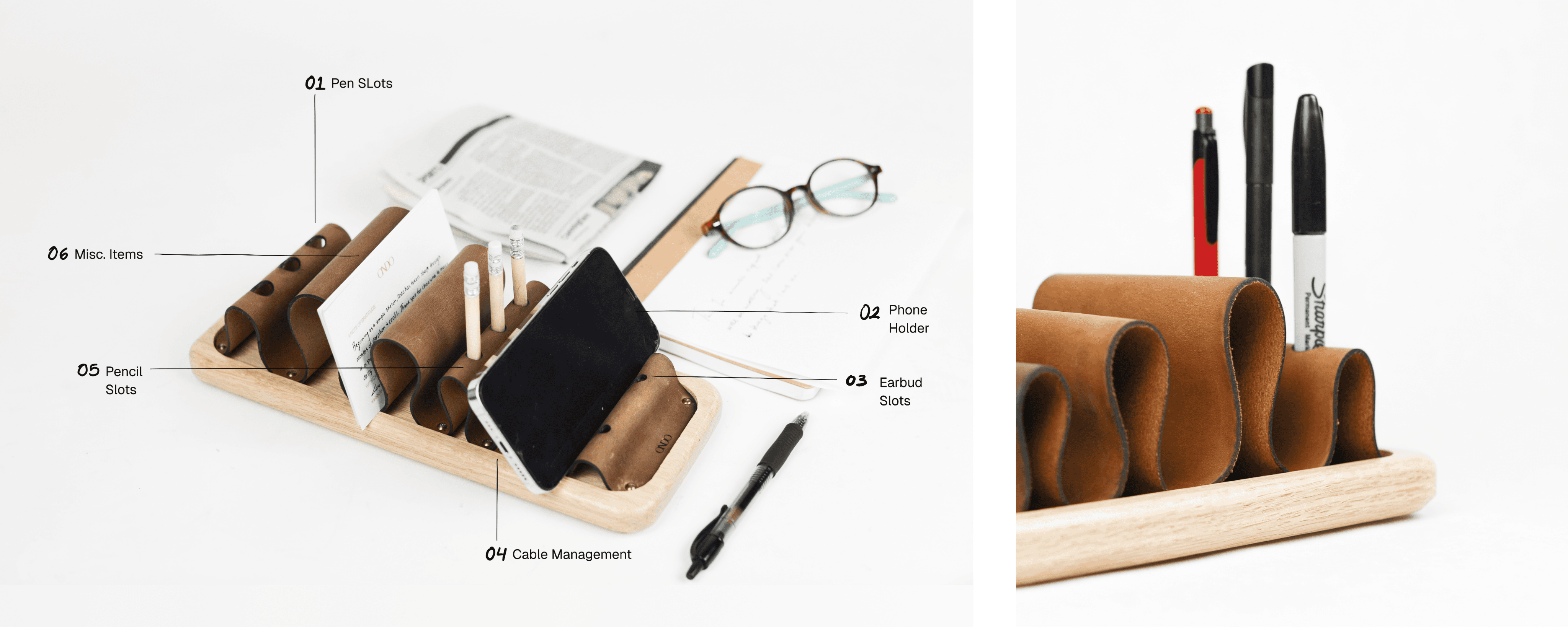 Instead of relying on multiple items to manage workspace clutter, Ondo serves as a single catch-all for your daily essentials—your phone, writing tools, loose notes, earbuds, and the small things that move through your day. Whether holding many items or just a few, Ondo brings understated refinement to your space.