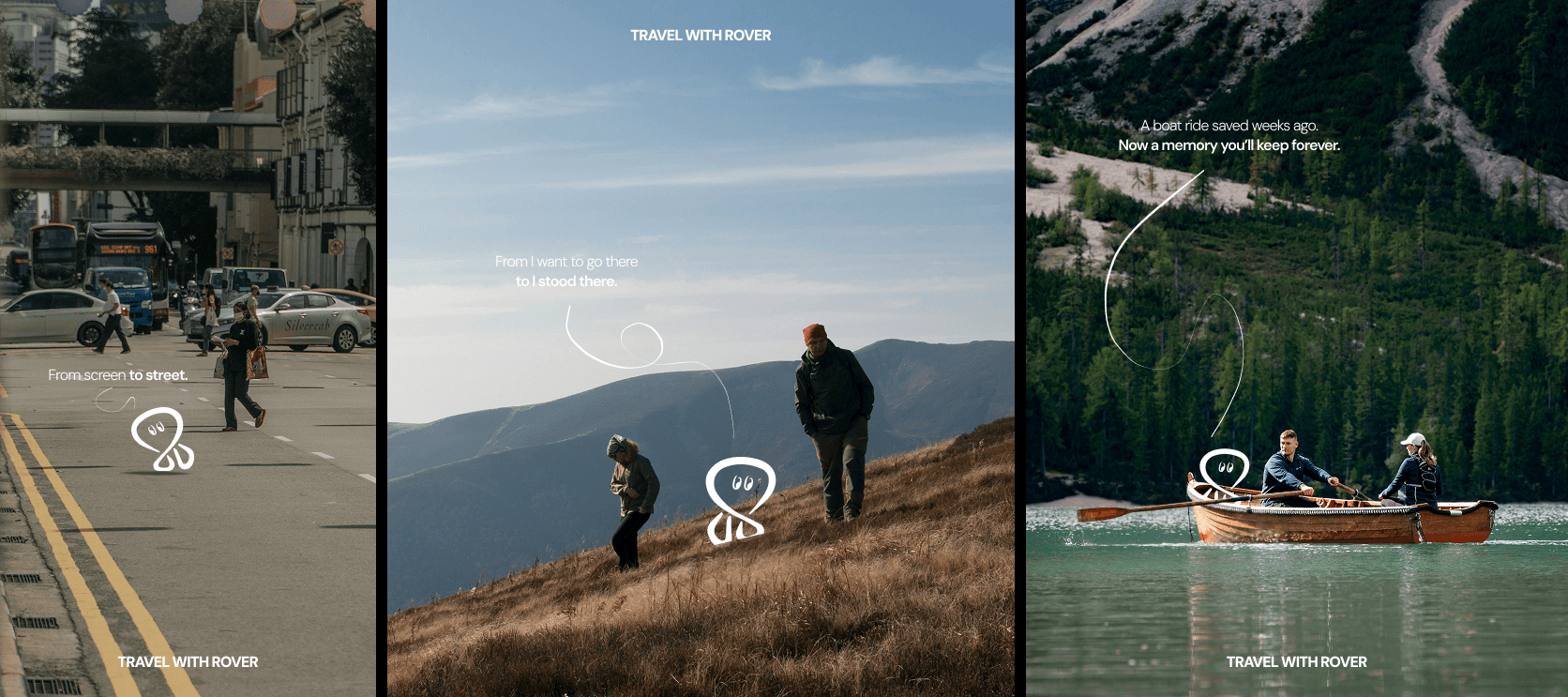 The campaign highlights Rover as a silent companion that bridges the gap between discovering places on social media and experiencing them in the real world — turning passive saves into shared moments.