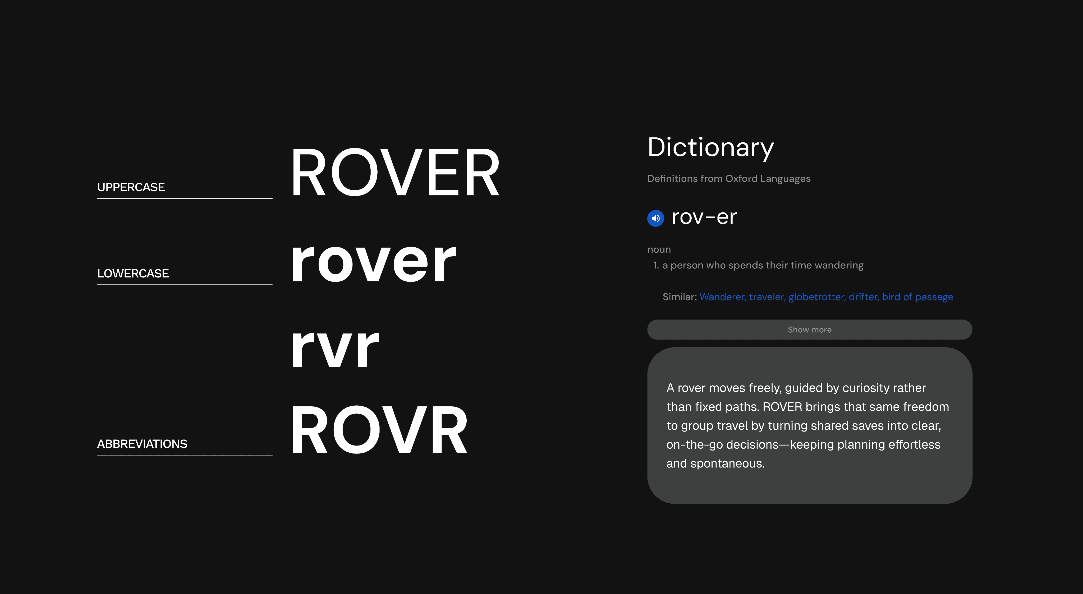 After many iterations, we landed on Rover—a name that captures the core purpose of the app while aligning with our brand tone.